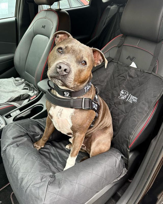 taco_thestaff Happy Staffy Co front seat cover. If you have a Velcro dog or you just want you best friend to sit at the front with you, YOU NEED THIS! Just look at my face